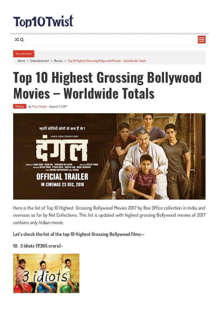 Which Indian Movie Highest Collection In World - It is followed by bajrangi bhaijaan and secret superstar.